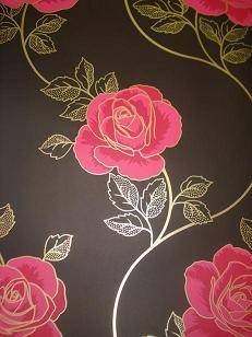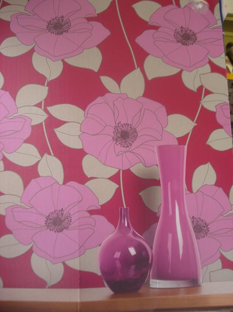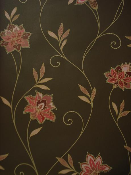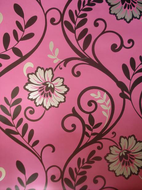 Heavyweight Wallcovering Pink backgound with mettalic design sure to be very popular with todays modern furnishings Only £ 9.99 per roll |