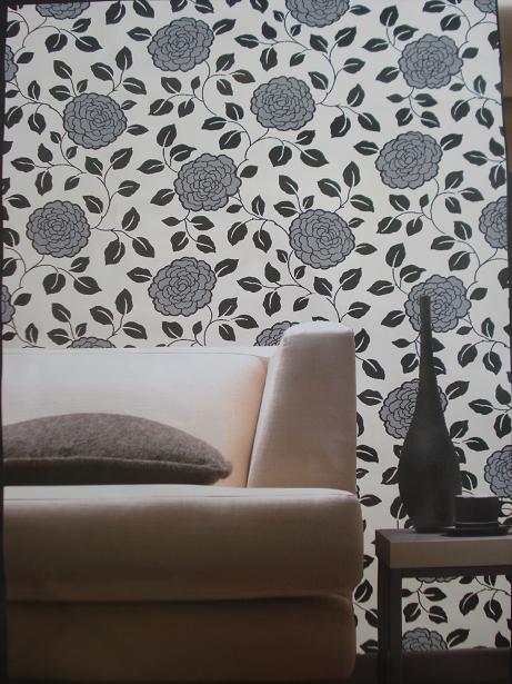 Black backround with white and silver flowers Only £ 9.99 per roll |